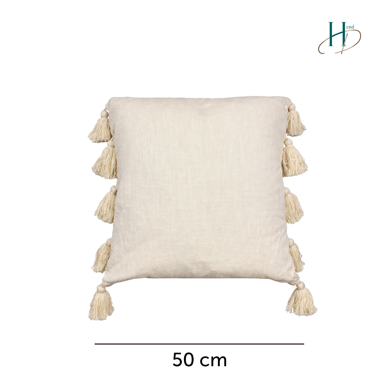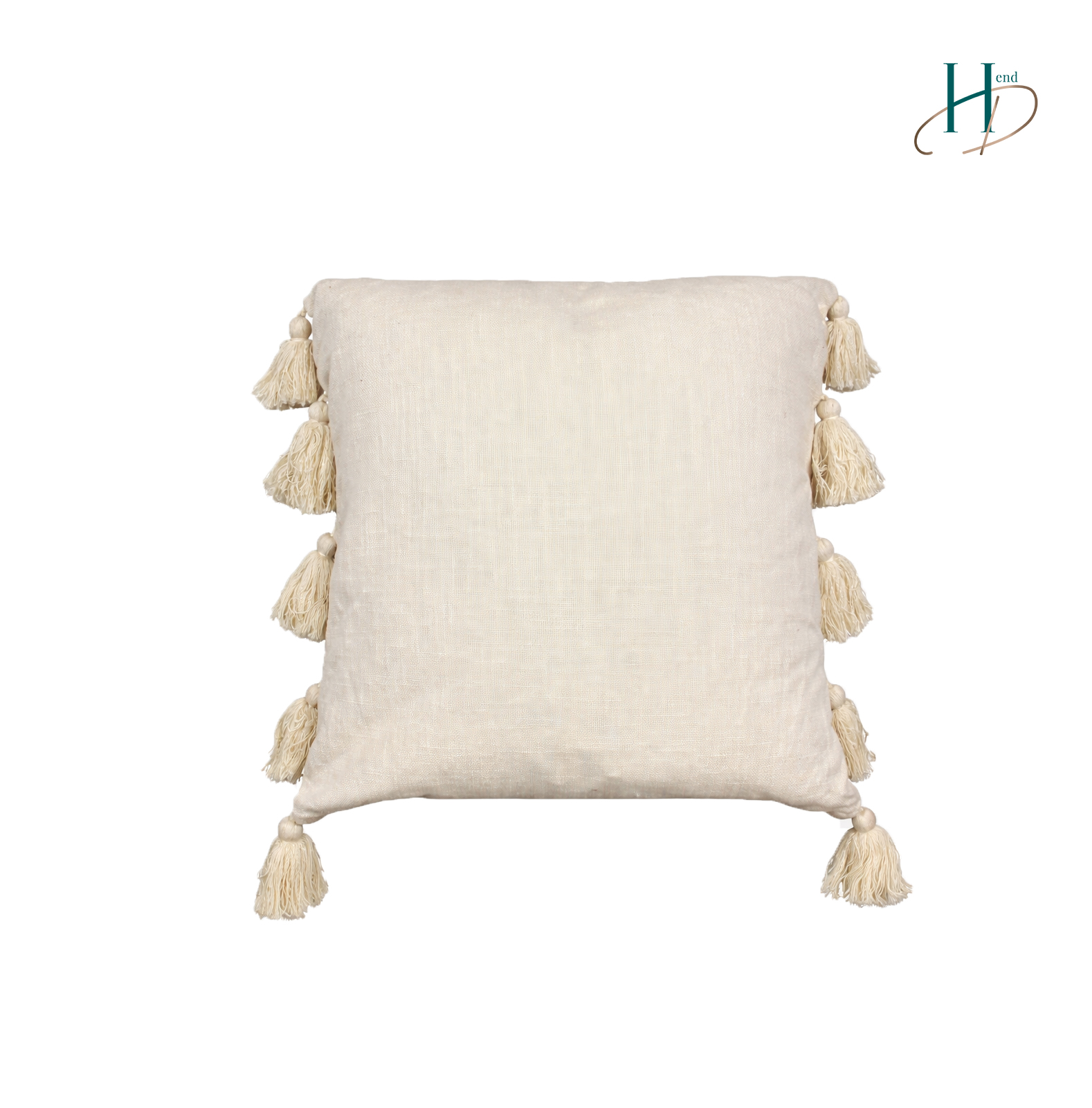 Poduszka dekoracyjna w stylu boho, z frędzlami.