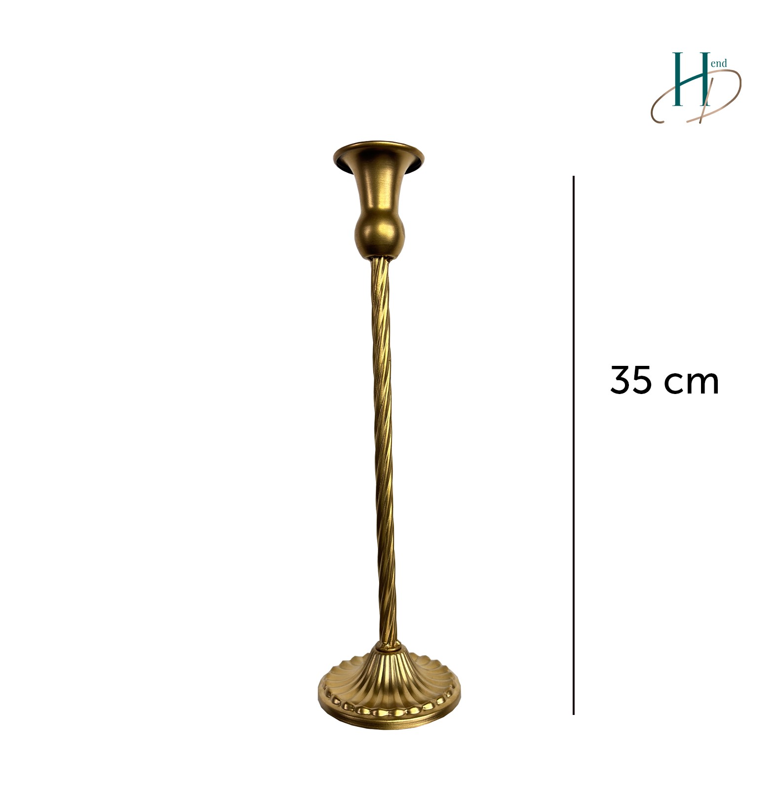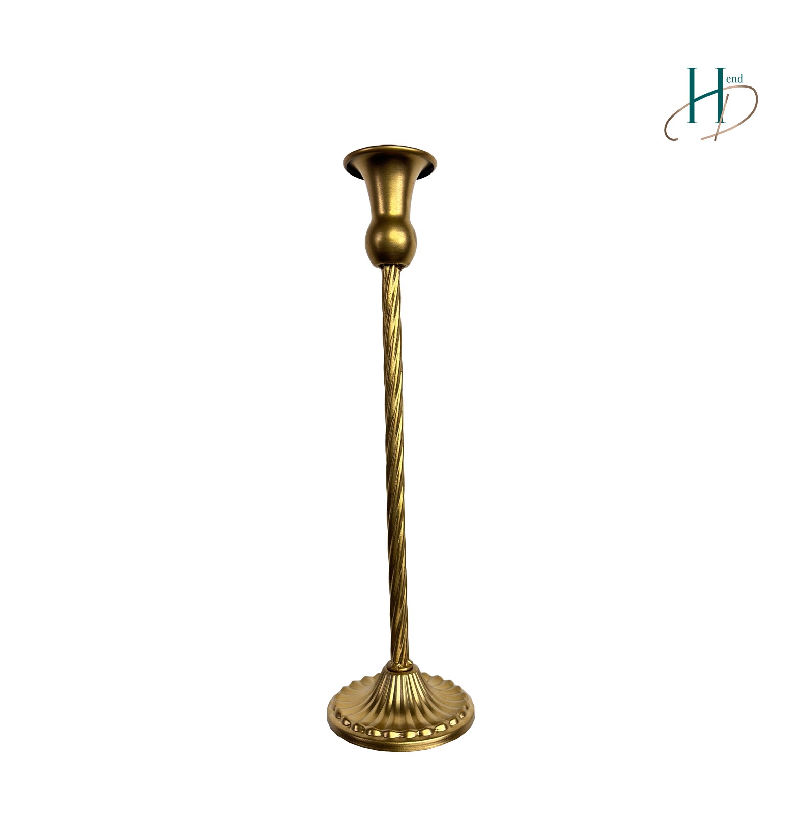 Metalowy świecznik złoty, na długiej nóżce