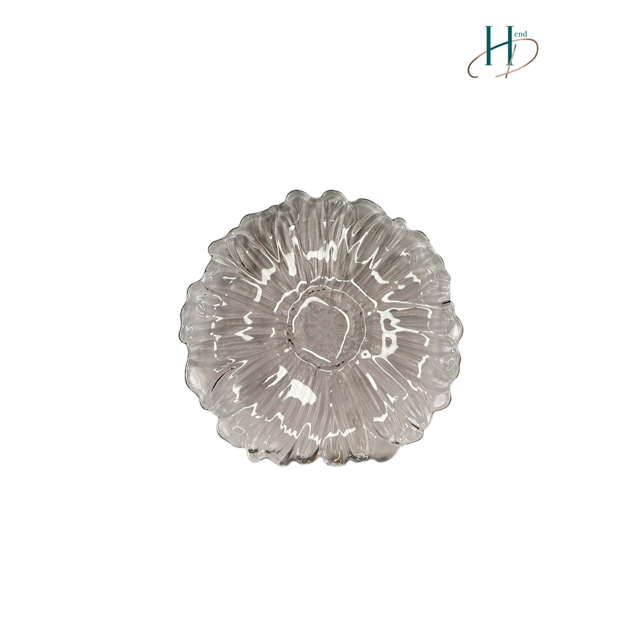 Talerz z różowego szkła w kształcie kwiatu .
